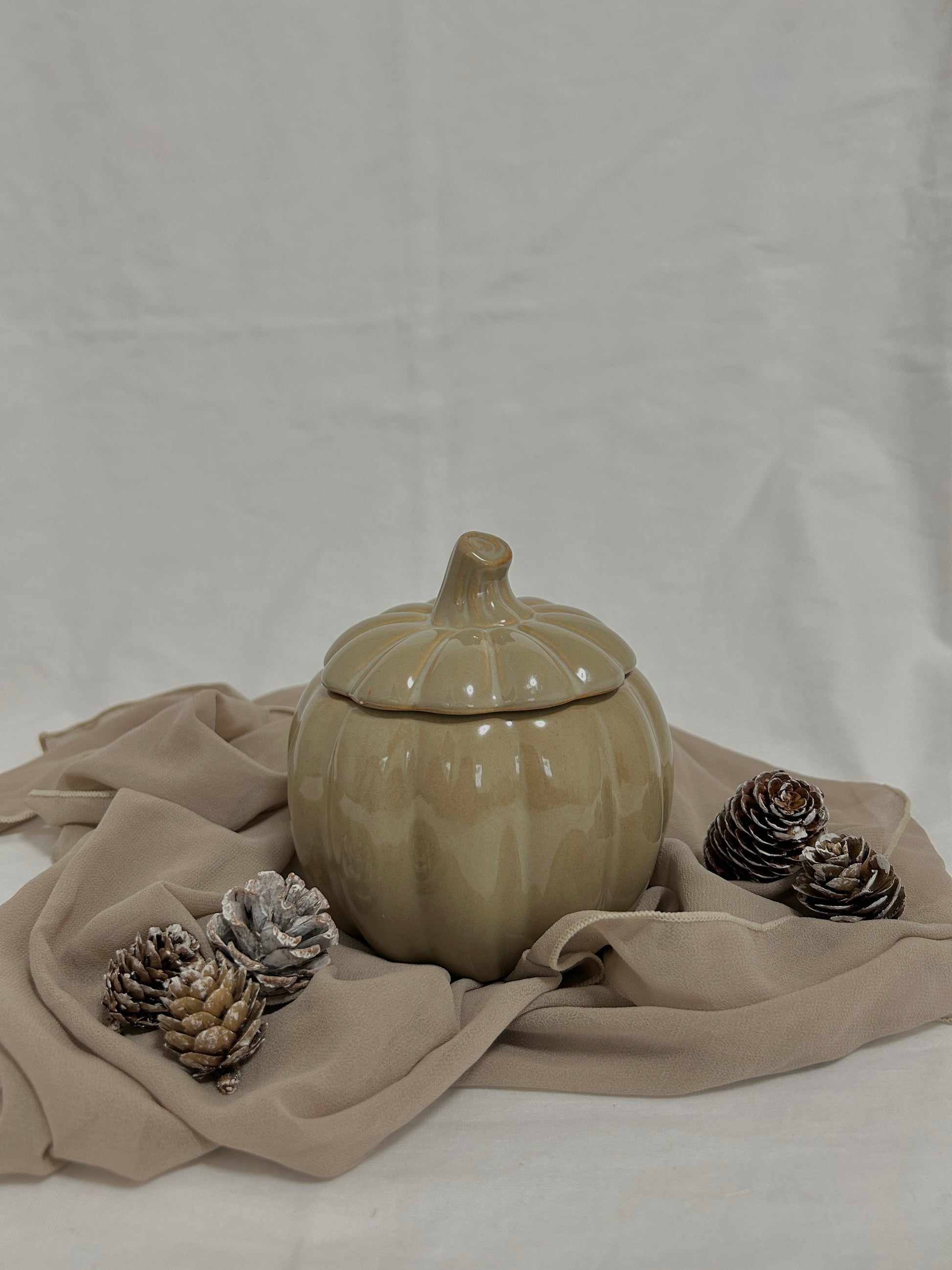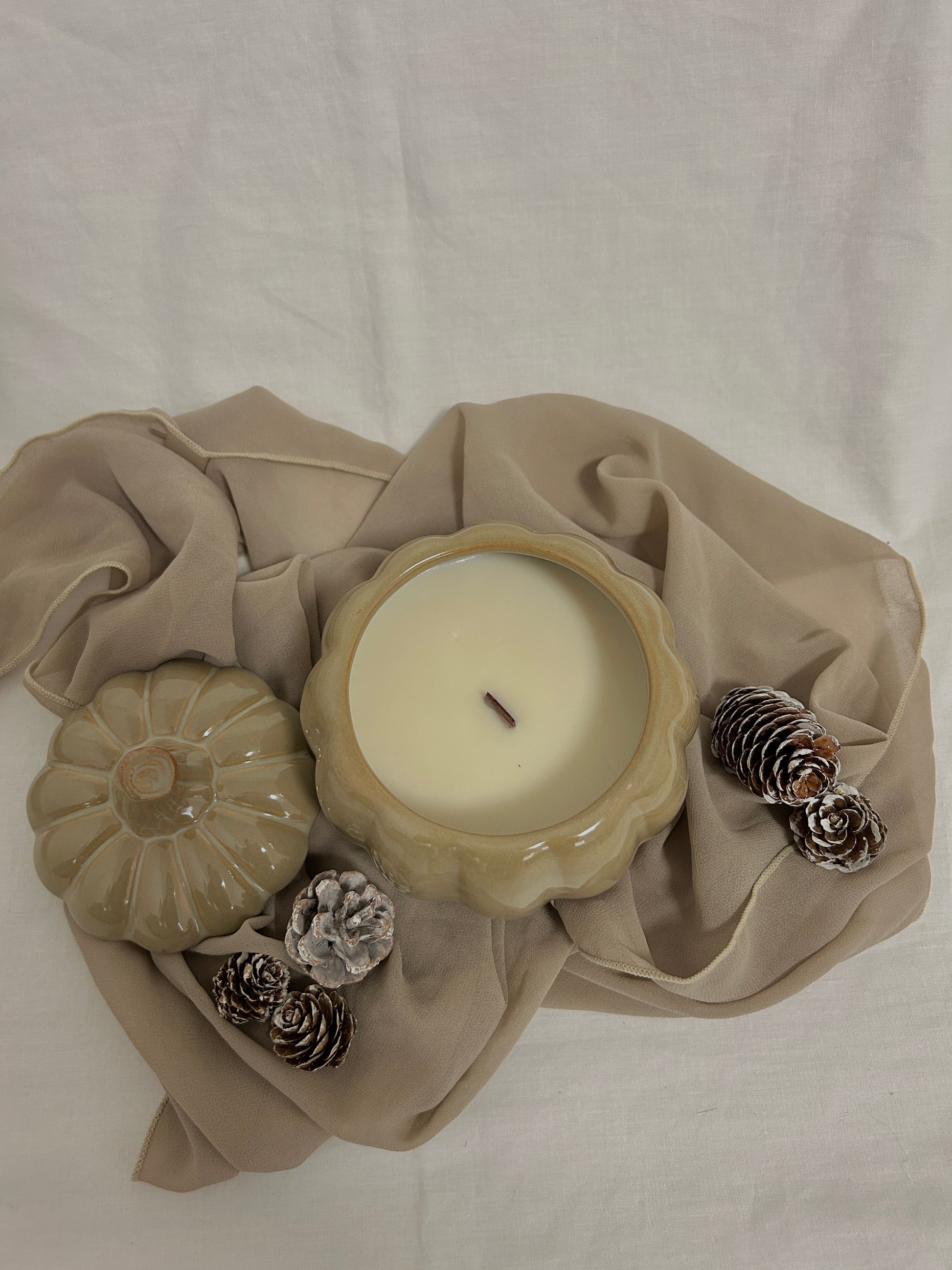 Descubre nuestra nueva vela artesanal en un encantador envase de cerámica con forma de calabaza, ideal para esta temporada. Contiene 300 g de cera de soja 100 % natural, perfumada con una exquisita esencia de Caramelo de Café. Un aroma envolvente y reconfortante que transformará cualquier rincón en un refugio cálido y acogedor.
