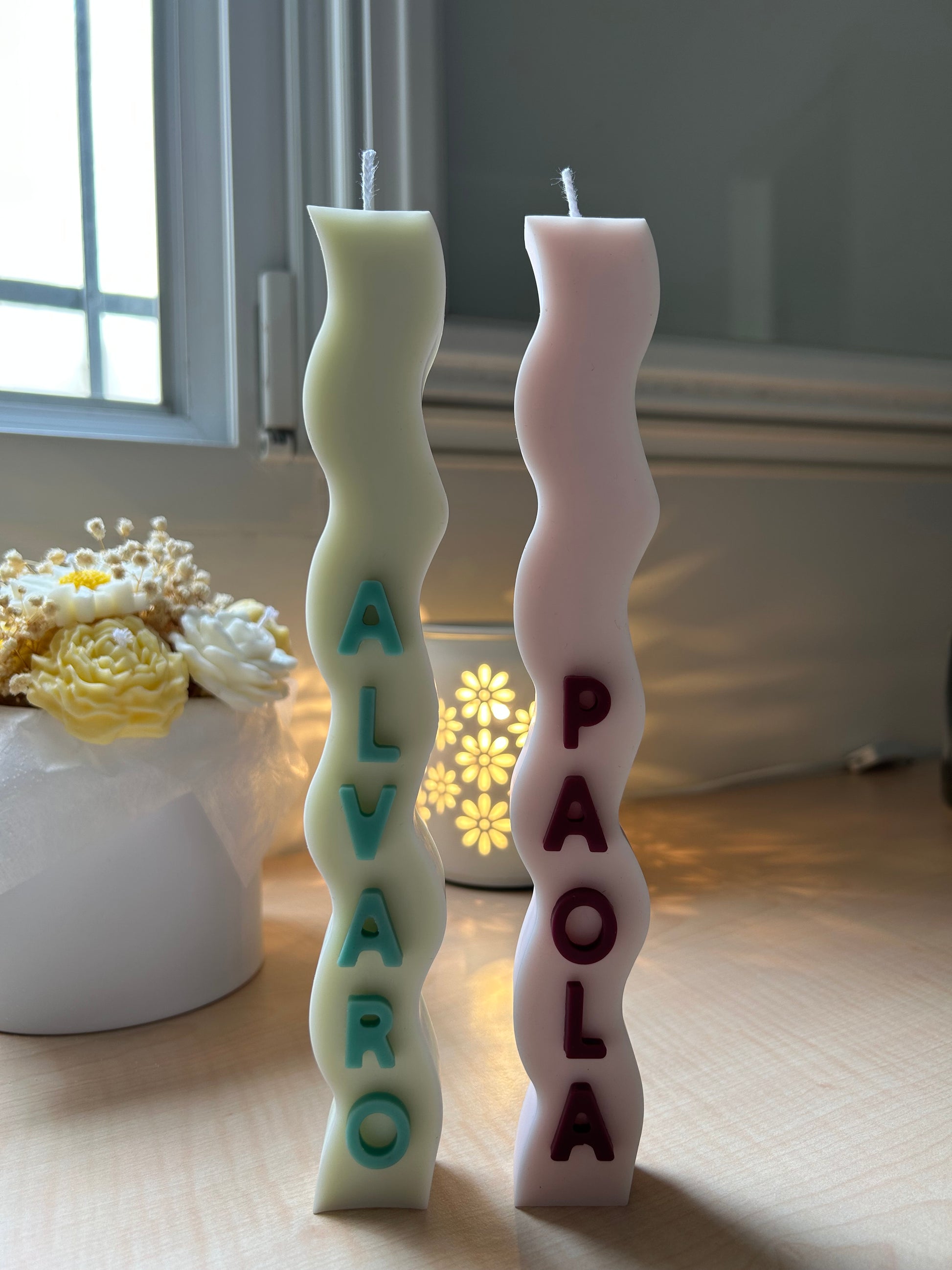 En comentarios, indicar nombre o fecha que deseáis en la velita y colores, tanto para la base como para la decoración!